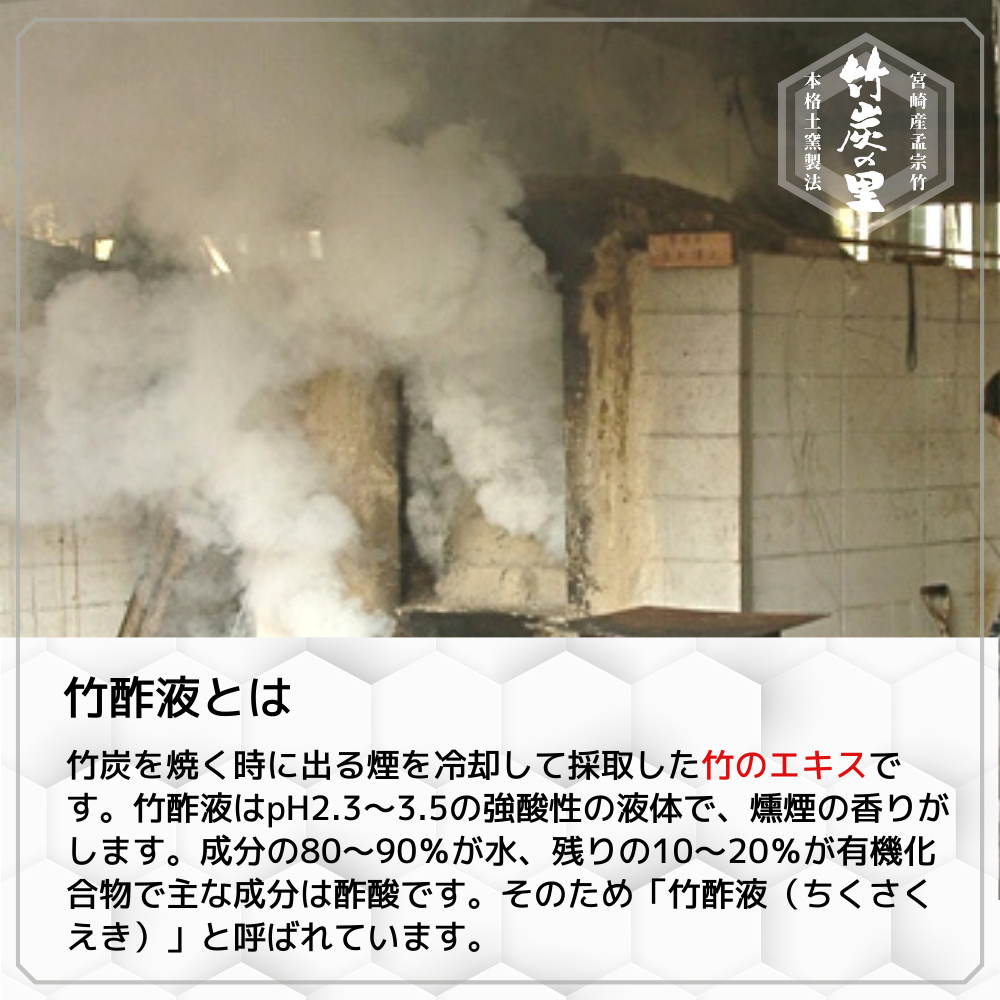 竹石けんの竹酢液は竹酢液の中でも少量しか採取できない貴重で純度の高い竹酢液のみを配合しています。