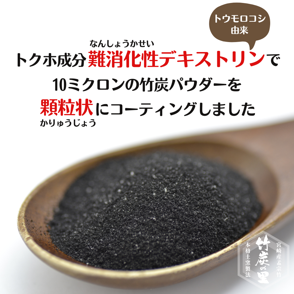 【原材料名】難消化性デキストリン、植物炭末色素(竹炭・宮崎県産孟宗竹)
