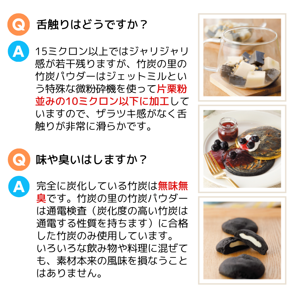 竹炭独自の超微粒子による吸着効果でダイエットサポートにも。