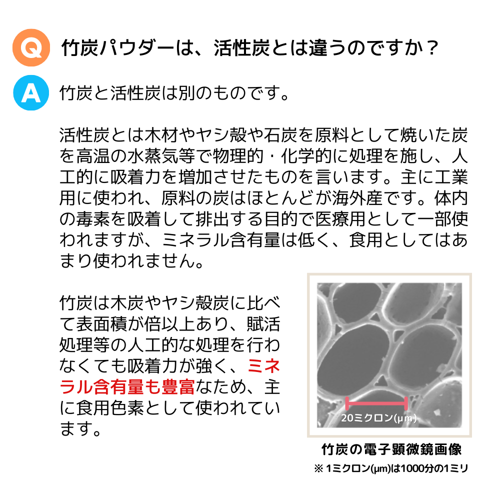 純国産の竹炭100%、無添加・無香料・無着色。¥2,916税込